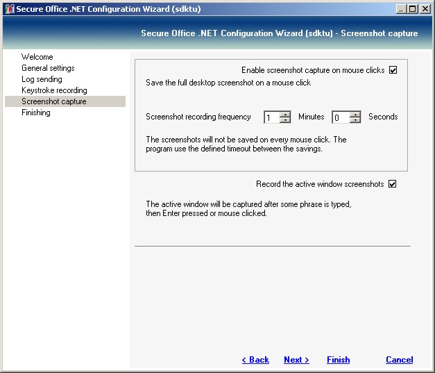 The screenshot capture is disabled by default. You must consider that